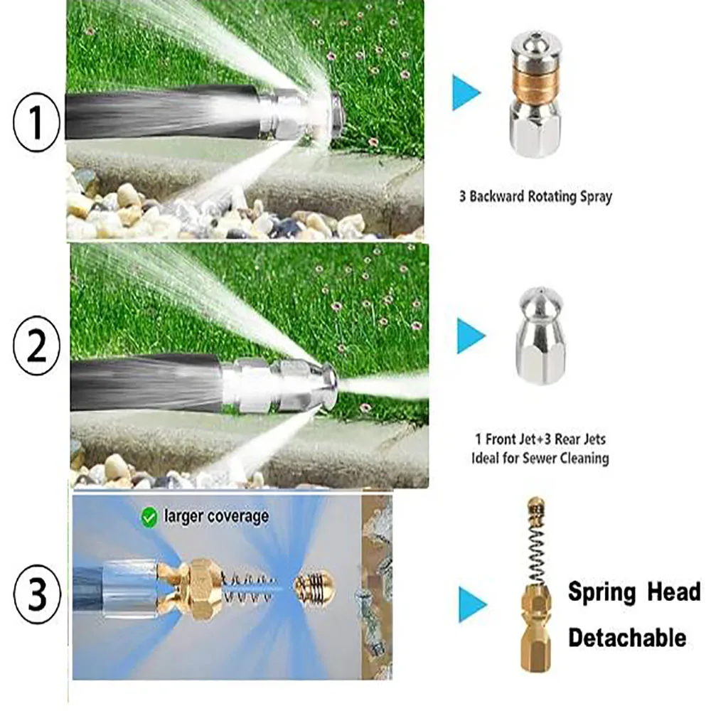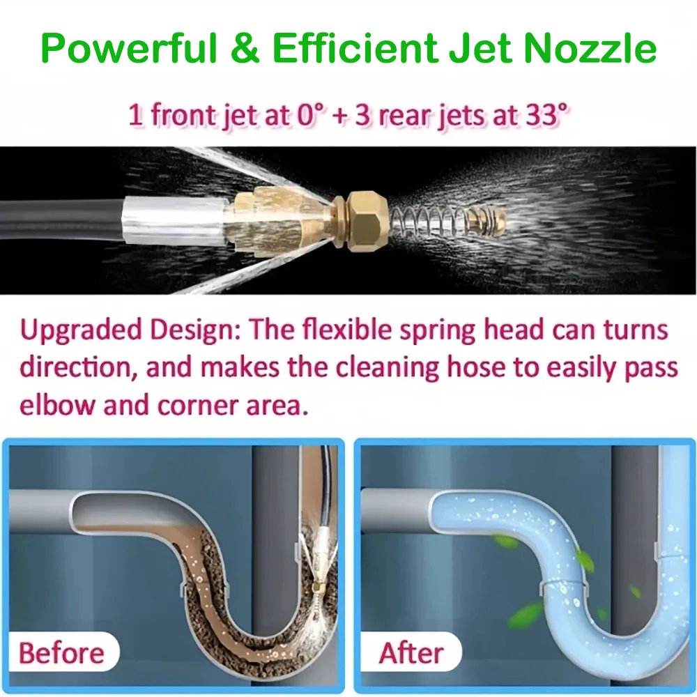 3. Convenient and fast: The sewer cleaning hose has a compact volume, does not take up too much space, is convenient to use, and can be used to clear the sewer anytime and anywhere.
