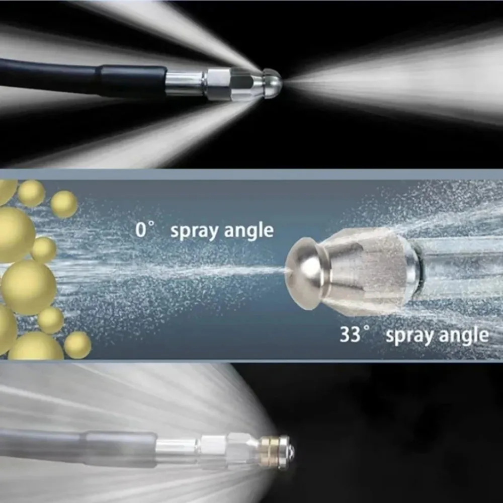 1. Obvious cleaning effect: The high-pressure nozzle adopts a high-pressure water jet leaning method, and the water flow can directly impact the blocked foreign objects, resulting in a significant effect.