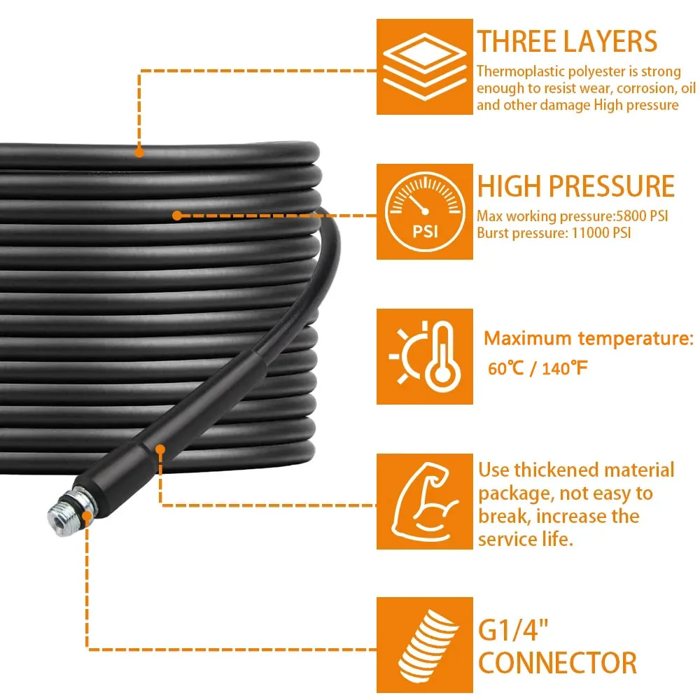 0.5~40M Sewer Drain Water Cleaning Hose,High Pressure Washer Pipeline Blockage Jet Washer Hose For ForBosch/AR/Black & Decker