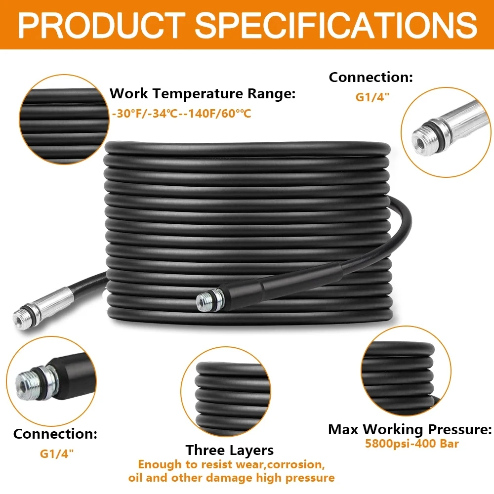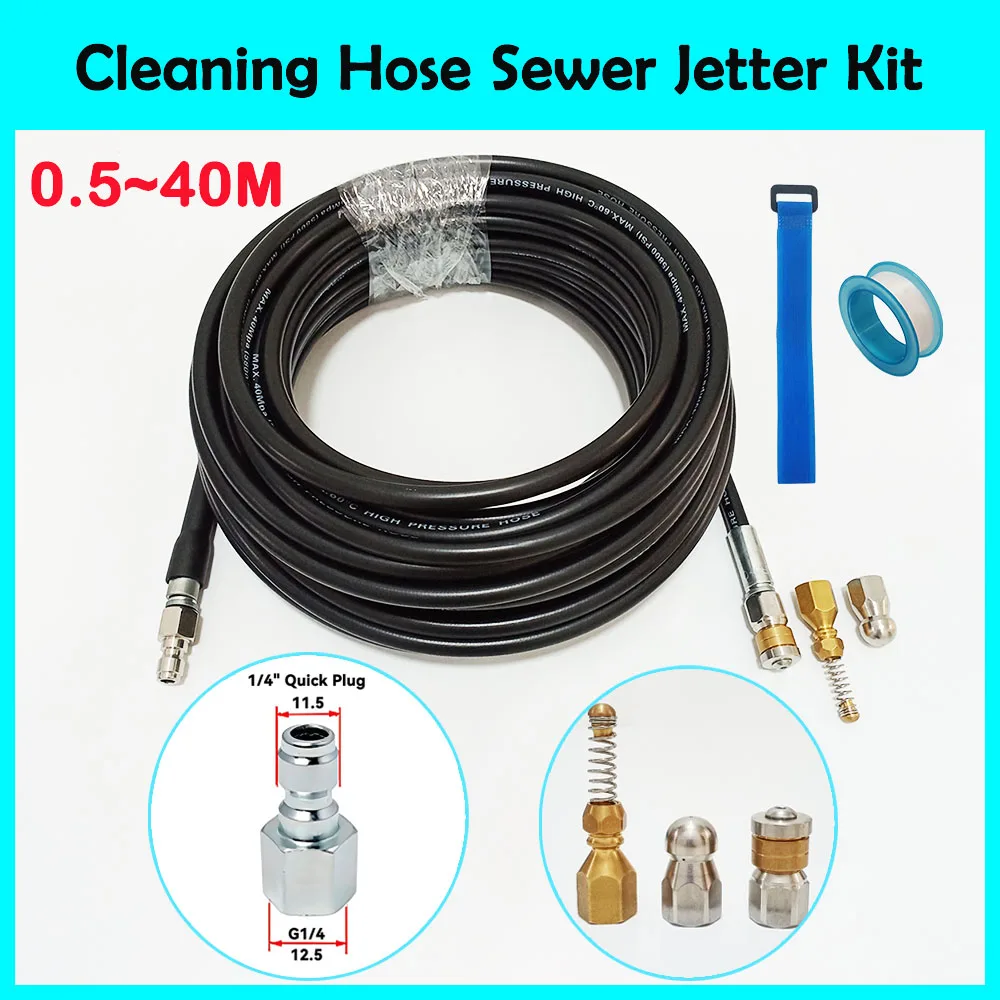 0.5~40M Sewer Sewage Water Jetter Kit Washer Nozzles Black High-Pressure Cleaning Machine Hose Pressure Washer Nzzle Sewer Drain