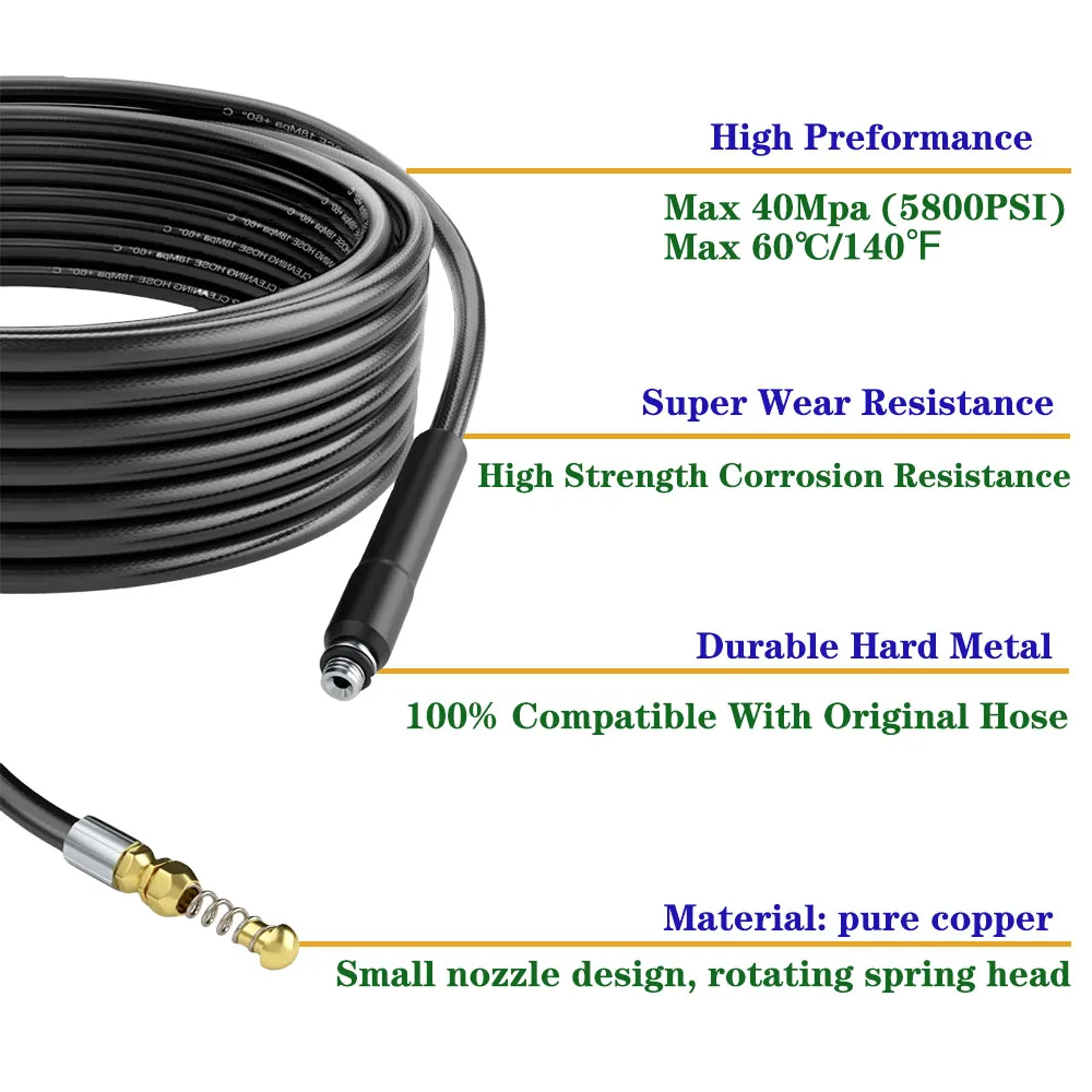 0.5-50M Sewer Drainage Hose High Pressure Washer Pipeline Blockage Jet Washer Hose Pipe Cleaning Kit For Some Huter Kolner