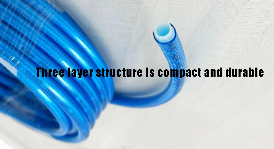 4. Smooth thermo plastic cover, Textile braided reinforcement, Seamless inner tube