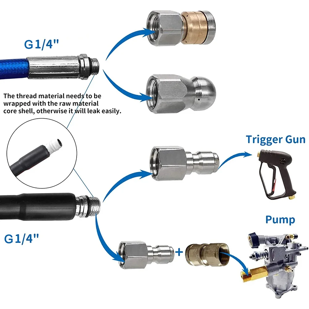 MULTIPLE USE - 1/4’’ pressure washer hose can be widely used in more places such as cars, floors, windows, driveways, sidewalks, roofs and etc.