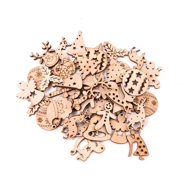 40pcs Christmas wood products Christmas tree Scrapbooking Craft Handmade Home Decoration Accessory Painting DIY Ornament