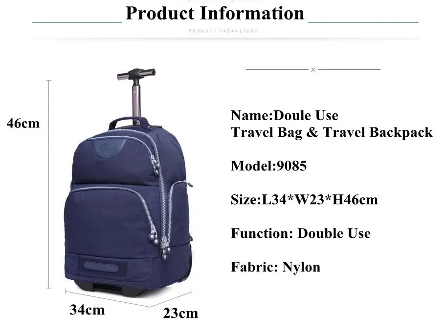 Double Use Travel Boarding bag on wheels trolley travel cabin luggage suitcase nylon wheeled travel backpack bag Travel Duffle