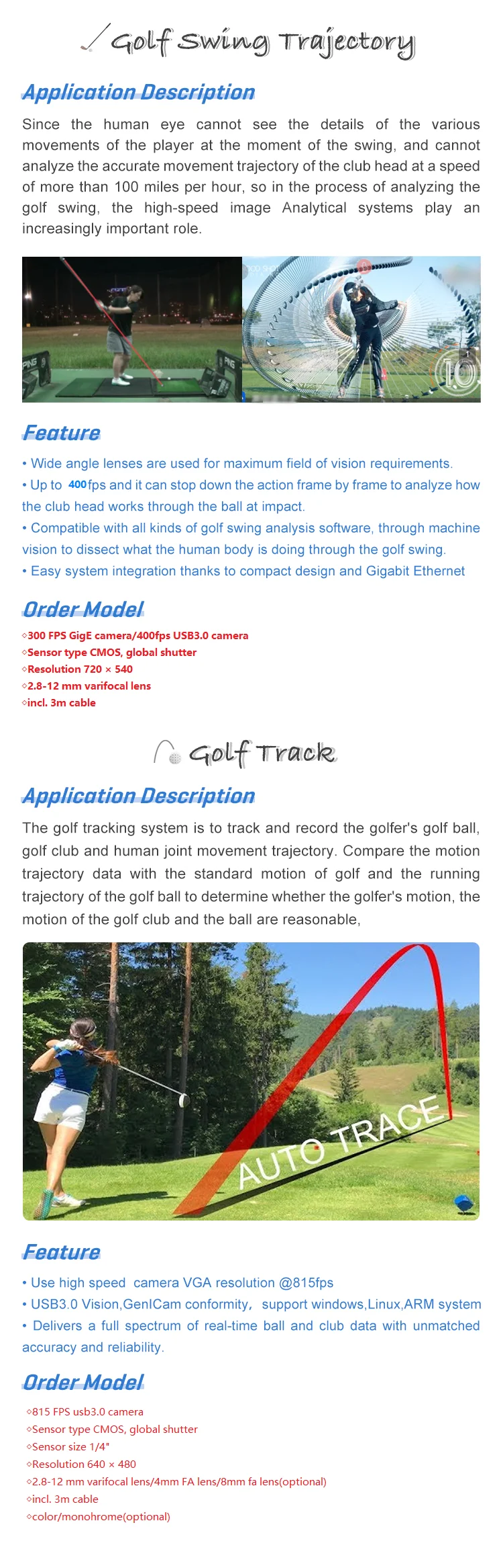 High Speed 300fps 526fps 1000fps Golf Simulator Camera With 2.8mm-12mm C Mount Lens