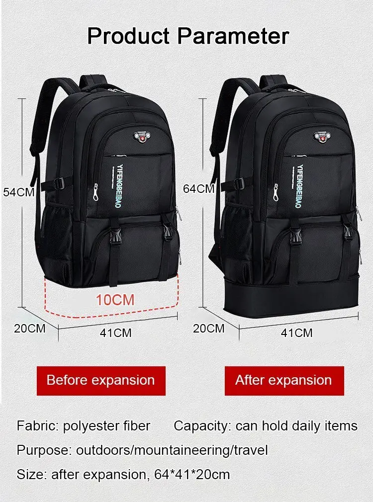 1. This spacious backpack is perfect for both men and women who love to travel and explore the great outdoors. With its large capacity and comfortable shoulder straps, it's the ideal choice for all your luggage needs.