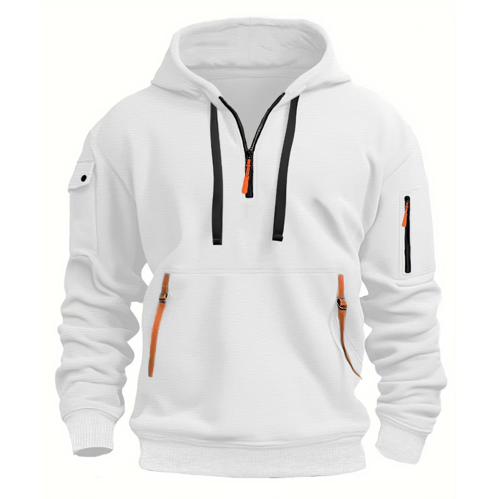 Men's Hooded Hoodie Zipper Multi-Pocket Pullover Jacket Sports Casual Sweatshirt
