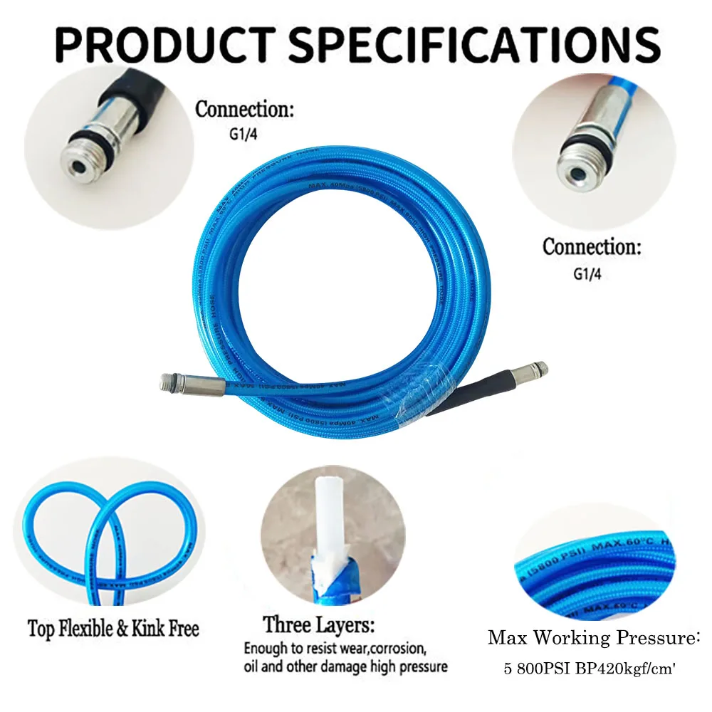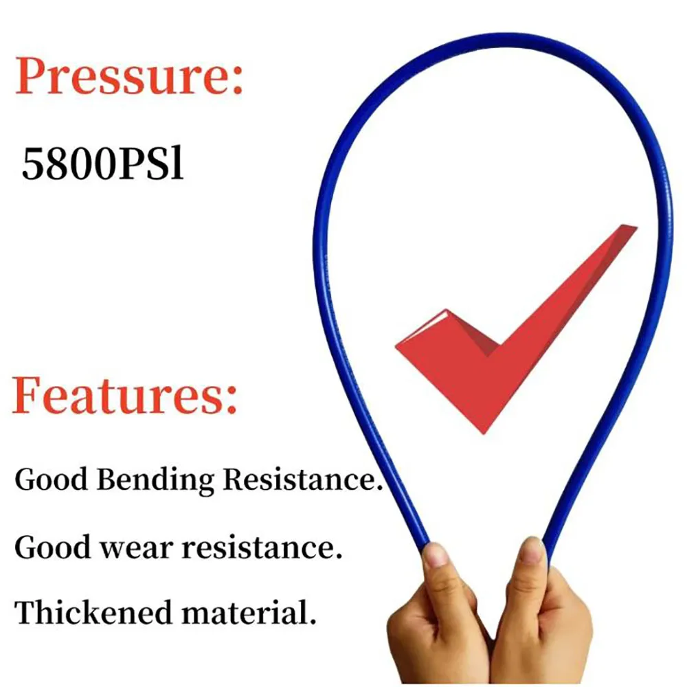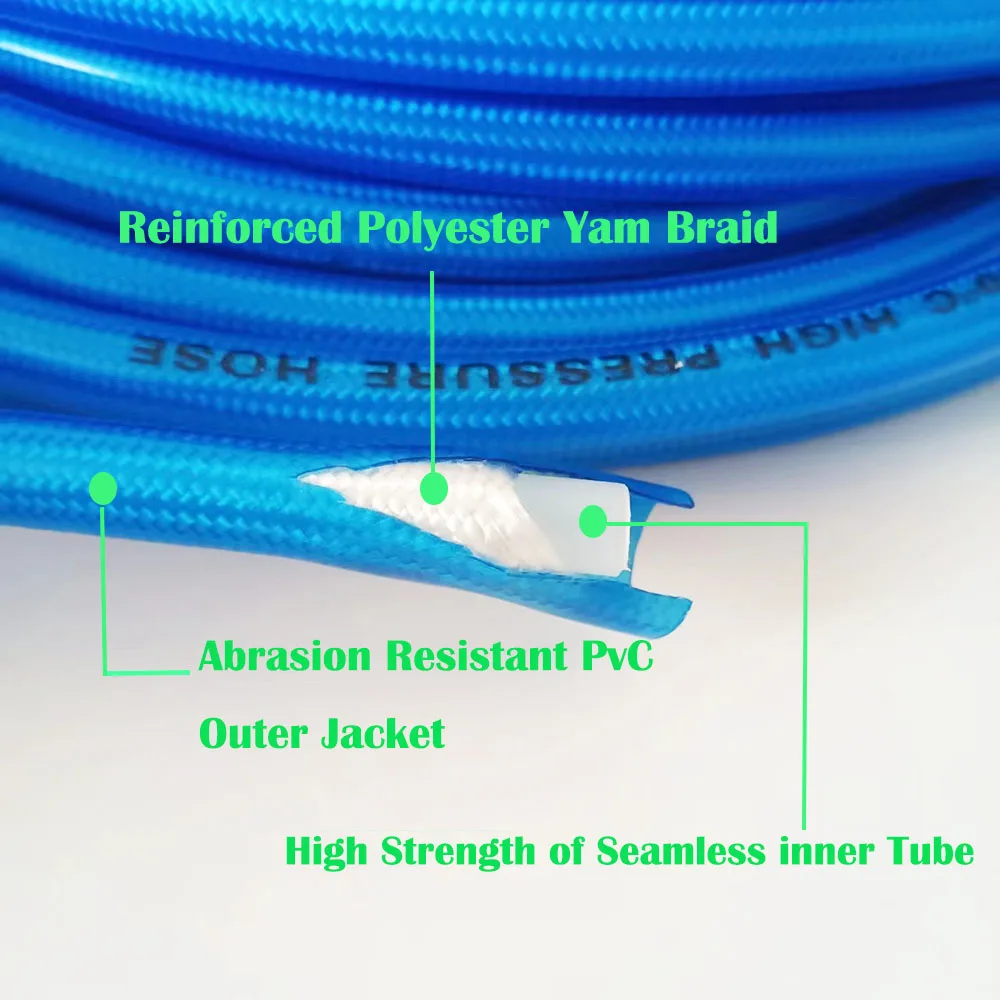 【HIGH QUALITY】 Sewer jetting hose has inner tube, reinforcement and cover. Inner tube is made of thermoplastic polyester. Reinforcement layer is 1/4" high tenacity polyester textile braid which is chemically bonded. Cover layer is made of thermoplastic polyurethane, which can resist weather, oil, abrasion and ozone. Bend radius of the hose is 4 inch. The maximum working pressure is 5800 PSI/400bar. Work Temperature Range: -30°F/-34°C to140°F/60°C.
