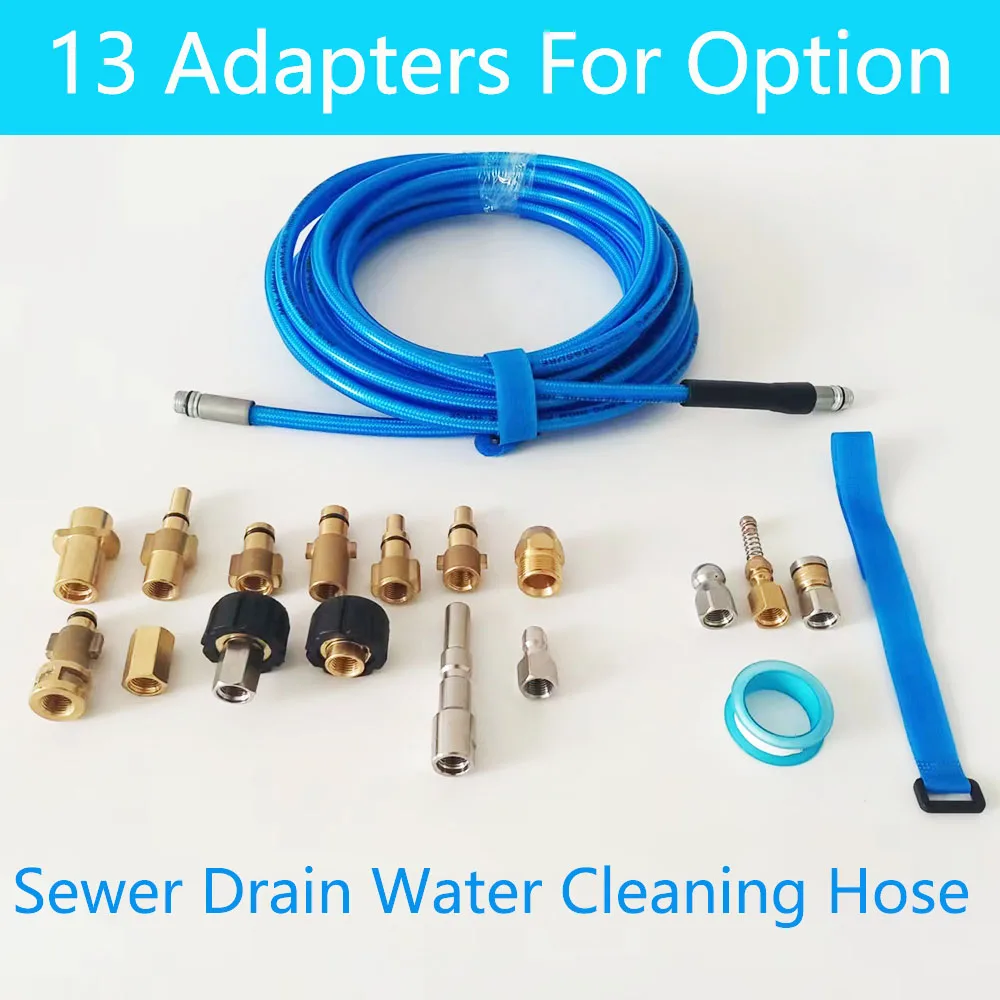 Pressure Washer Sewer Drain Hose 0.5~40M High-Pressure Cleaning Machine Hose Water Cleaning Hose13 Adapters For Option