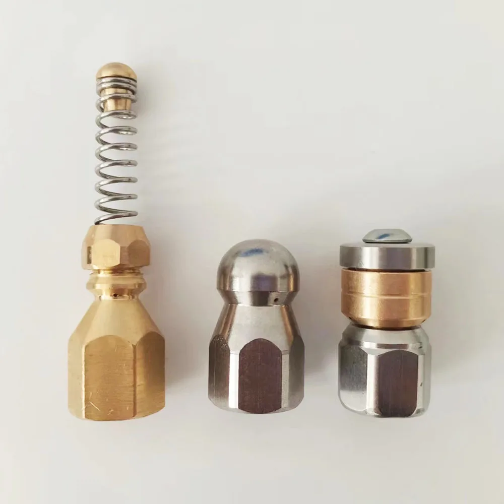 【Clear Blockage】 Button Nose Nozzle 1 front jet located at 0 degree, which can flush the blockage, the 3 rear jet at 33 degree, flush away debris loosened by the front jet.