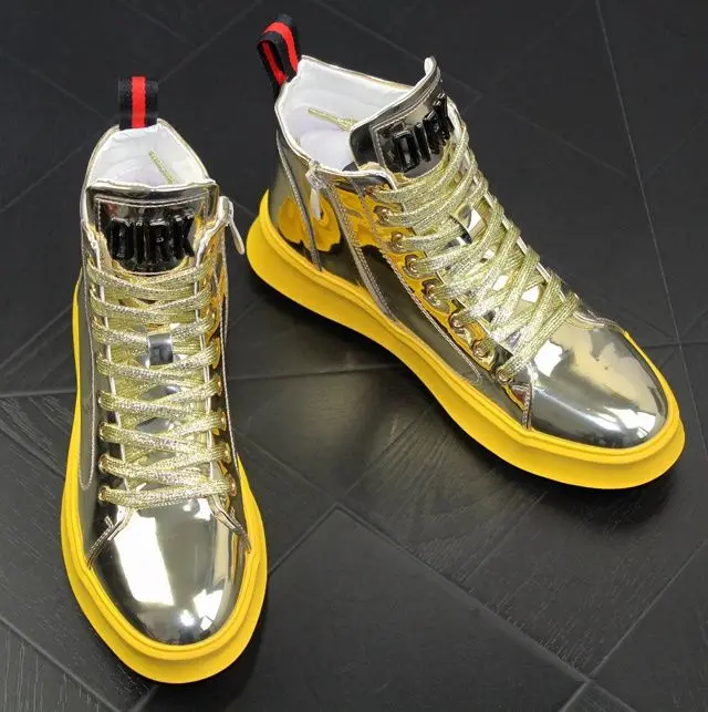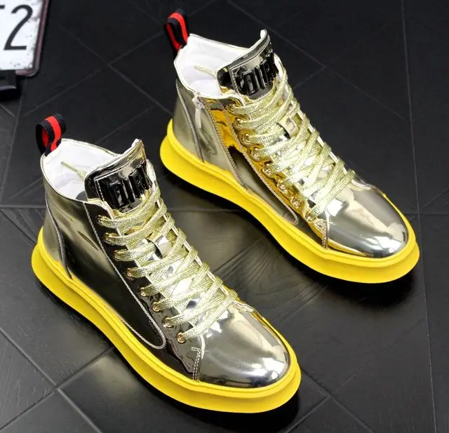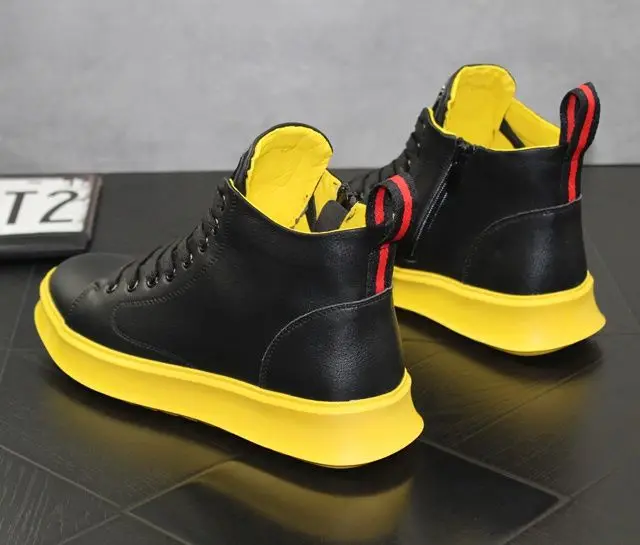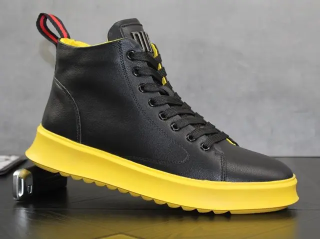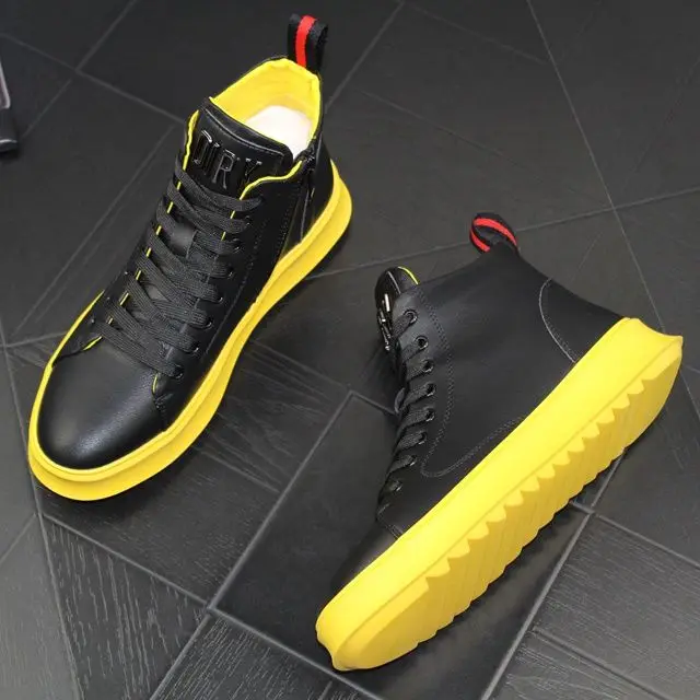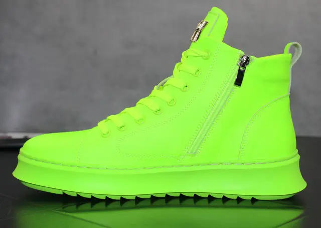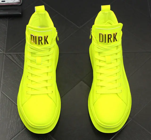 Spring and Autumn Men's Shoes High Top Casual Shoes New Fluorescent Green Casual Sports Shoes