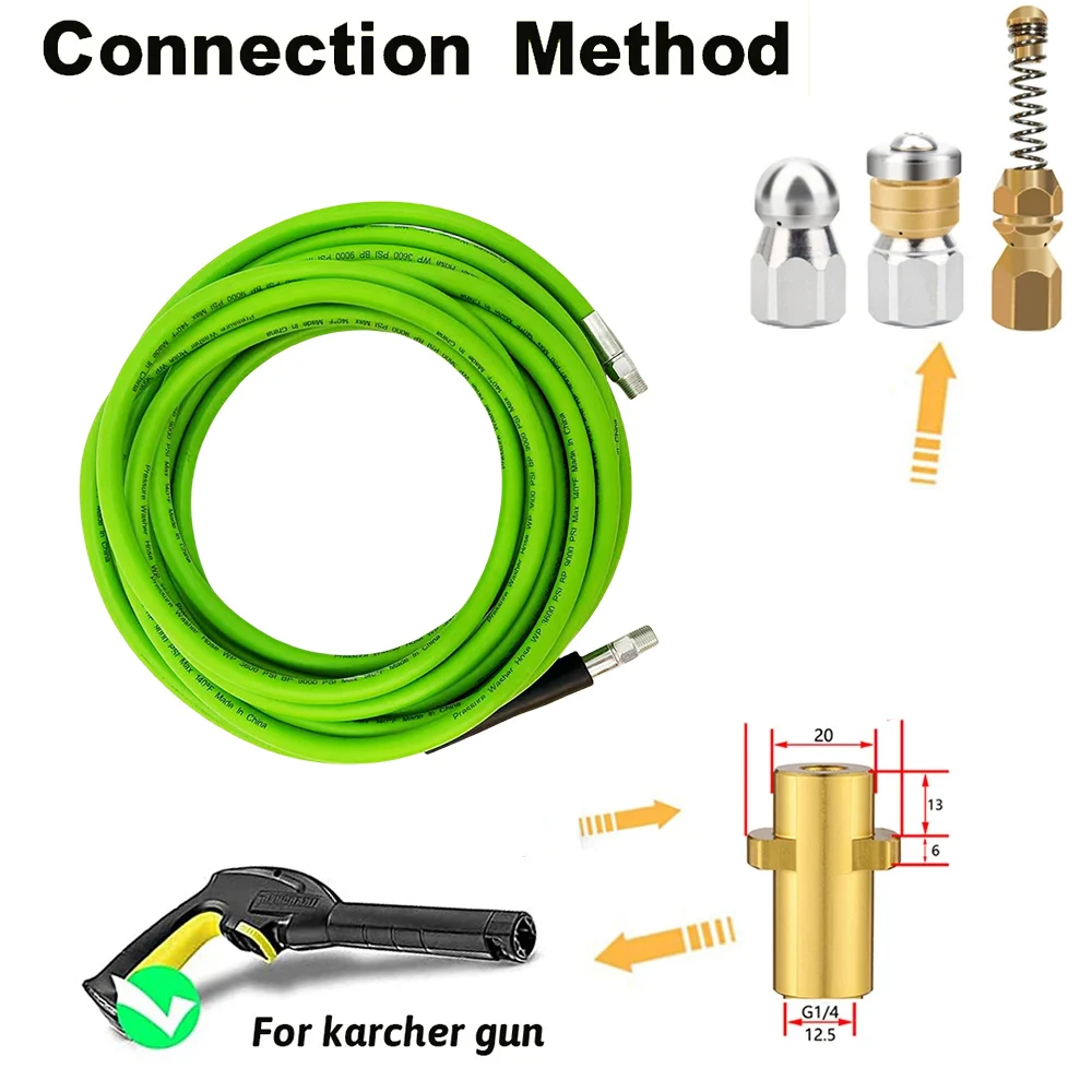 2~30M Super Flexible Pressure Washer Hose Pipeline Sewage Dredging Jet Hose Sewer Drain Jetting Kit Pipe Blockage Clogging Jet Washer Hose Cord For Karcher Bosch Lavor AR BLUE STIHL Wash Gun