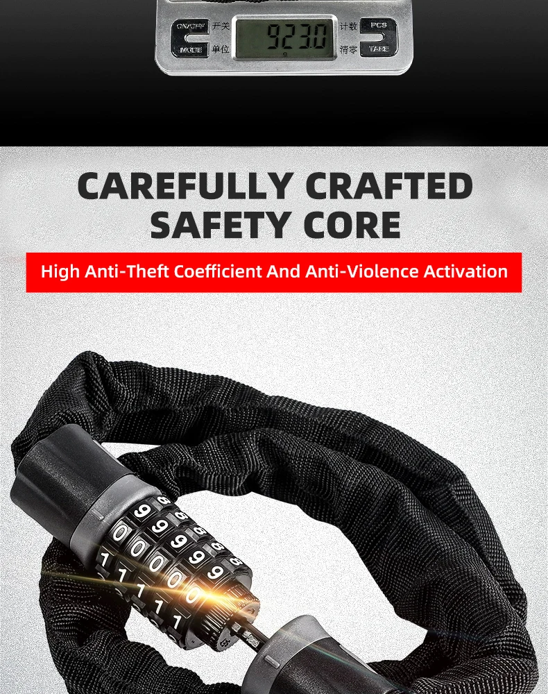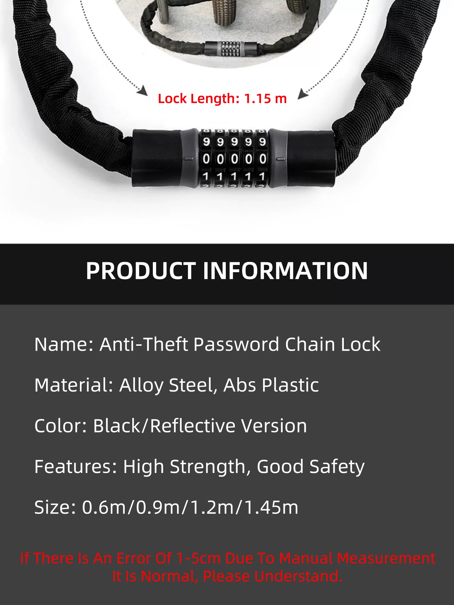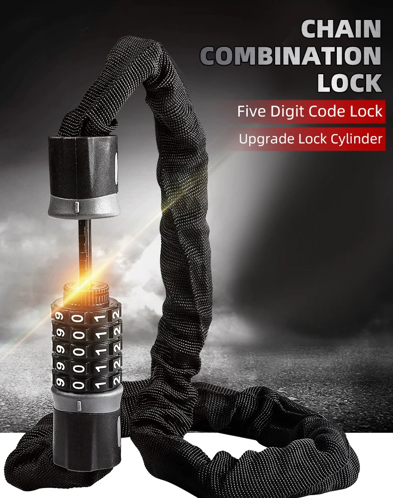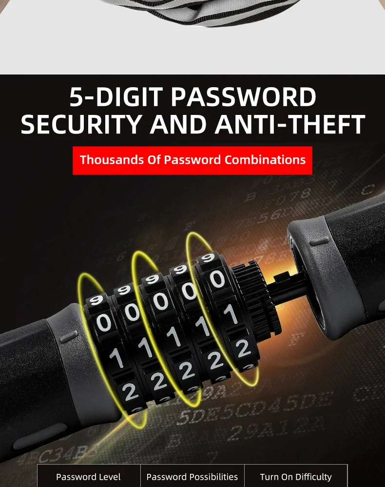WEST BIKING Bicycle Lock 5 Password Bike Digital Chain Lock Security Outdoor Anti-Theft Lock Motorcycle Cycling Bike Accessories