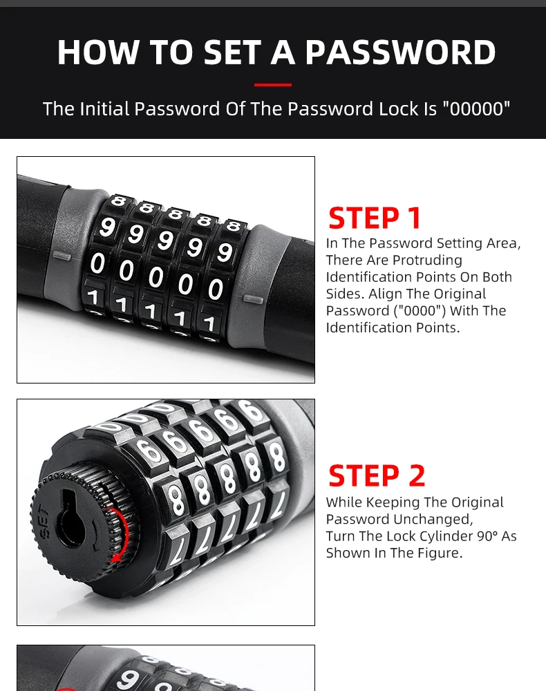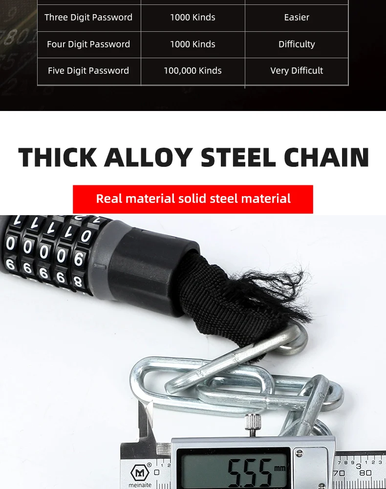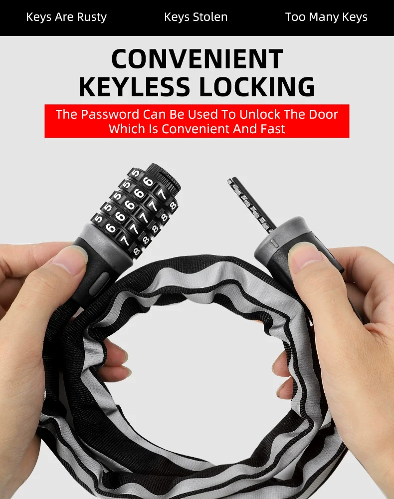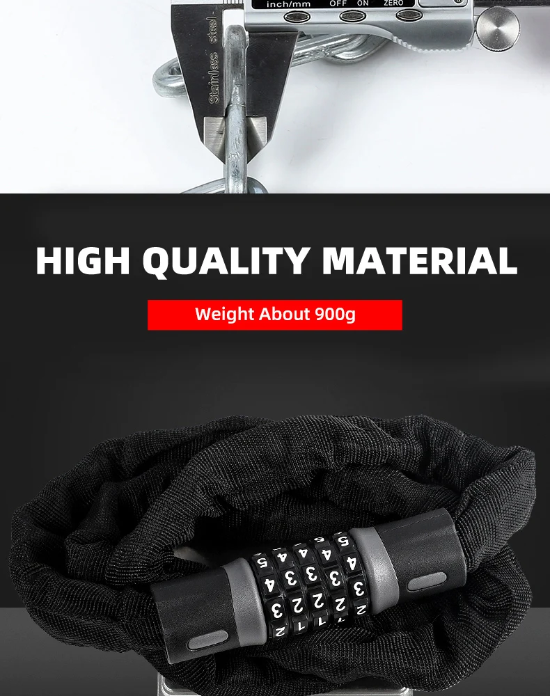 WEST BIKING Bicycle Lock 5 Password Bike Digital Chain Lock Security Outdoor Anti-Theft Lock Motorcycle Cycling Bike Accessories